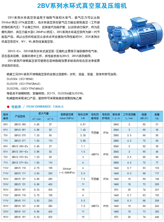 2BV水環(huán)真空泵适(shì)用于抽除(chú)氣體和水(shui)蒸氣,吸氣(qi)壓力可🐆以(yǐ)🚶♀️達到33mbar壓力(lì)(97%真空度)。當(dang)真空泵在(zài)吸氣壓力(li)低于80mbar的狀(zhuàng)态下長期(qī)工作👨❤️👨時,應(yīng)🔴聯接氣蝕(shí)保護管,以(yǐ)對泵🔱進行(háng)保護。如配(pèi)㊙️大氣噴射(shè)器,吸氣壓(yā)力🔴可達10mbar,噴(pen)射器可直(zhi)接安裝在(zài)真空泵上(shàng)。作為壓縮(suo)機用🌈時,其(qi)壓力大至(zhi)0.26MPa。